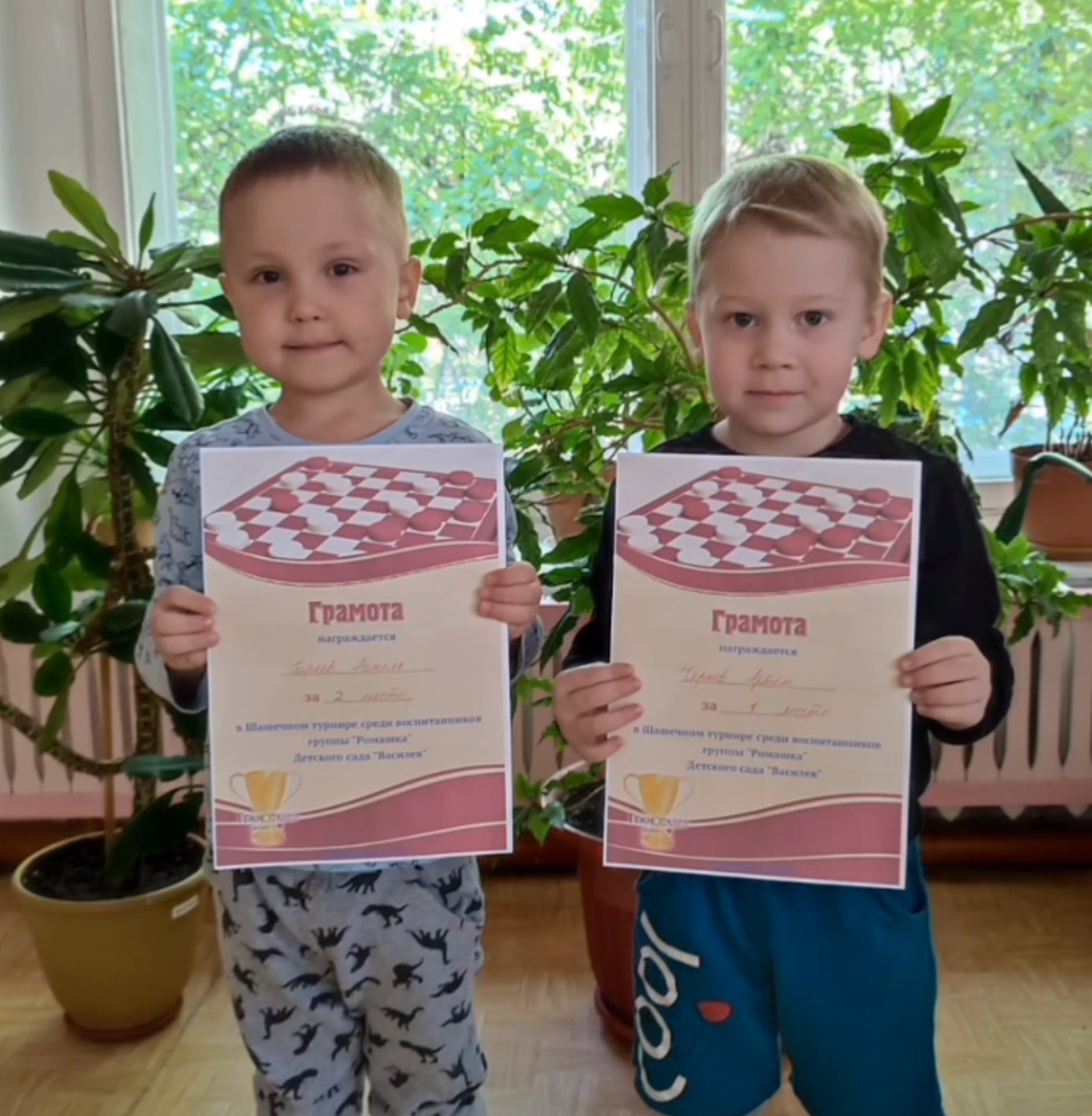 В группе "Ромашка" во время учебного года проводился кружок "Весёлые шашки". В конце учебного года мы подводим итоги. У нас прошёл итоговый Шашечный турнир.