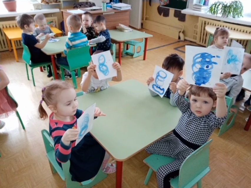 Но долгая, морозная зима ещё вся впереди. На занятии мы с ребятами рисовали снежную, игривую вьюгу. (Смотрите видео здесь!)