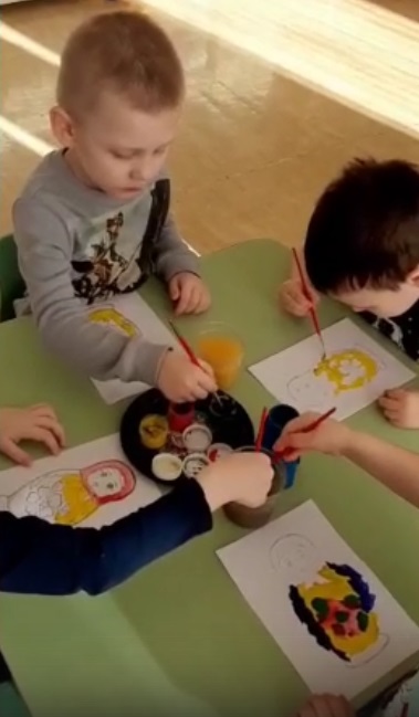 Начали мы своё путешествие по нашей любимой стране — России. Вспомнили столицы России и Татарстана. А на занятии по рисованию детки рисовали один из символов России, национальную игрушку — Матрёшку. (Смотреть видео!)
