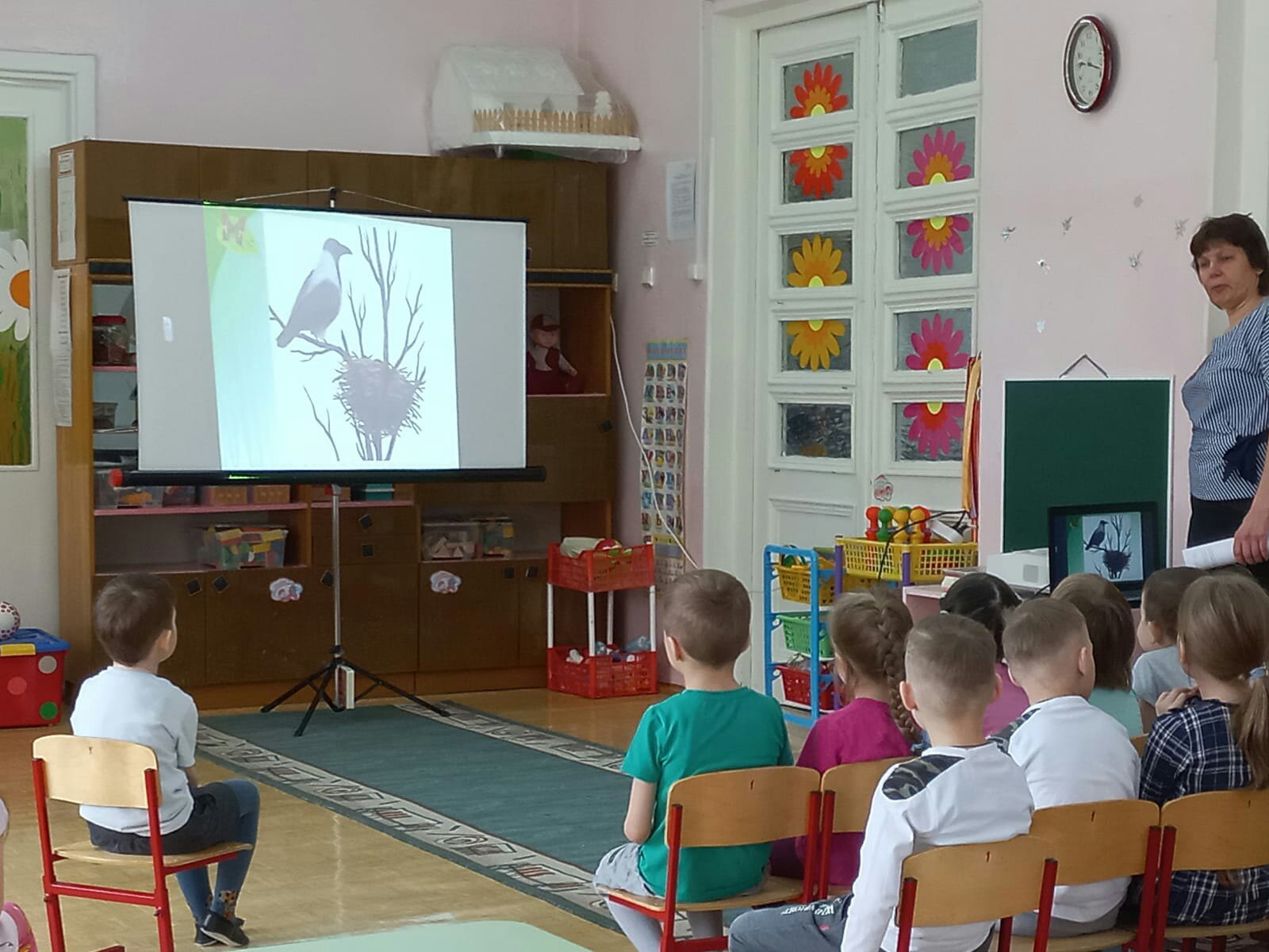На занятии по ознакомлению с окружающим миром, наши дошколята ещё раз закрепили представление о перелётных птицах, об их жизни в весенний период. А ещё "Весёлые ребята" узнали о звуковых сигналах птиц, о видах гнёзд и их размещении. (Смотреть видео)
