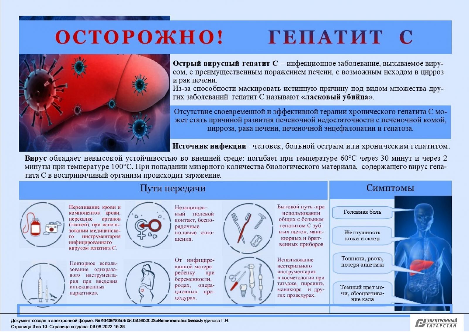 Опубликовано: 08.08.2022ФБУЗ «Центр гигиены и эпидемиологии в Республике Татарстан» Федеральной службы по надзору в сфере защиты прав потребителей и благополучия человека по Республике Татарстан в рамках реализации памятной даты «28 июля – Всемирный день борьбы с гепатитом» и в целях популяризации здорового образа жизни информирует население о профилактике гепатитов А, В, С, Д.