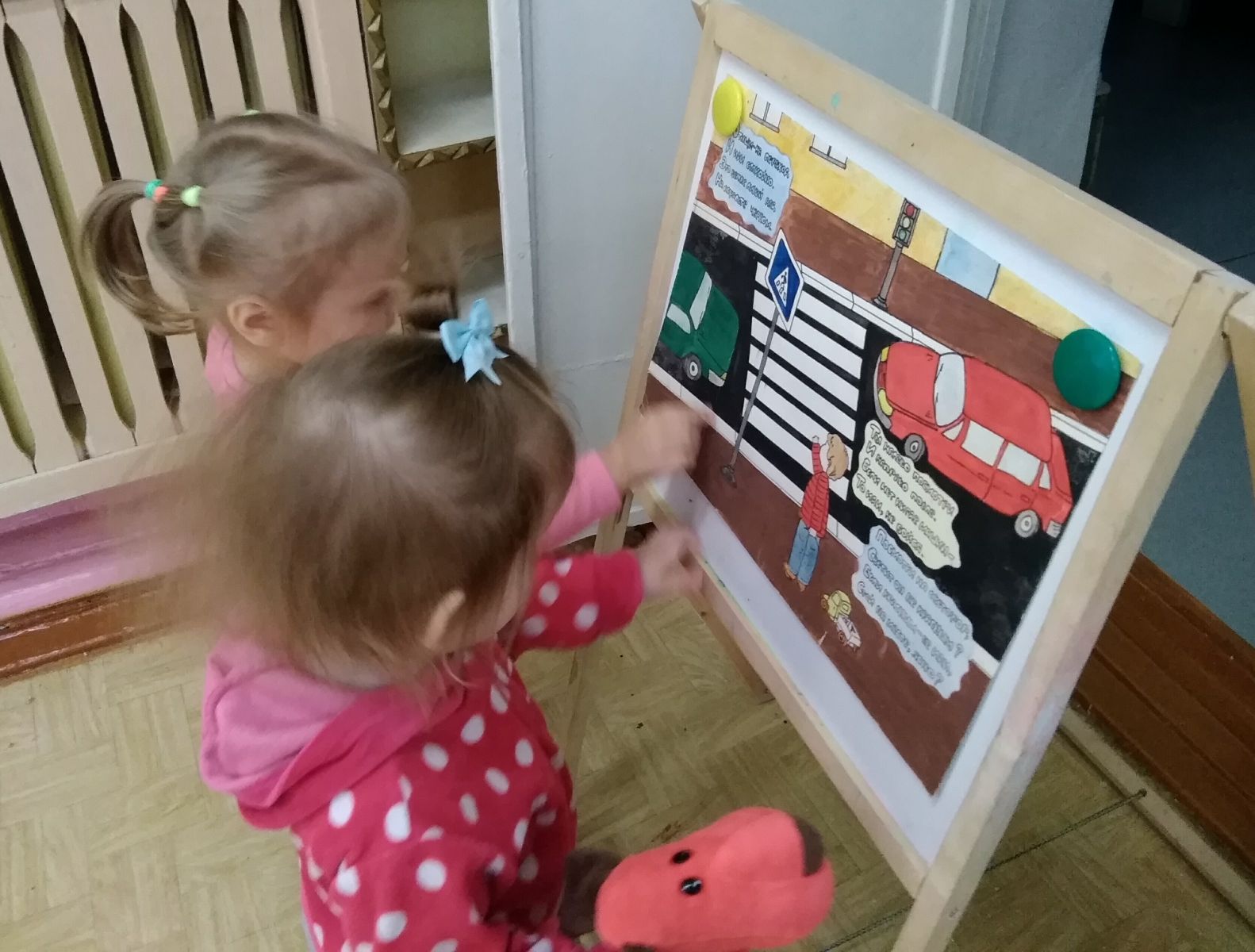 Начиная со 2 младшей группы педагогами были проведены тематические беседы с детьми о правилах дорожного движения «Правила поведения на дороге, в транспорте, на улице», «Чтобы не случилось беды», «Безопасность на улице в темное время суток» «Детское кресло». Организована выставка книг по данной тематике, рассмотрены и проанализированы различные ситуации. На групповых информационных стендах, групповых страничках в социальной сети vk были представлены консультации для родителей по тематике безопасного дорожного движения.