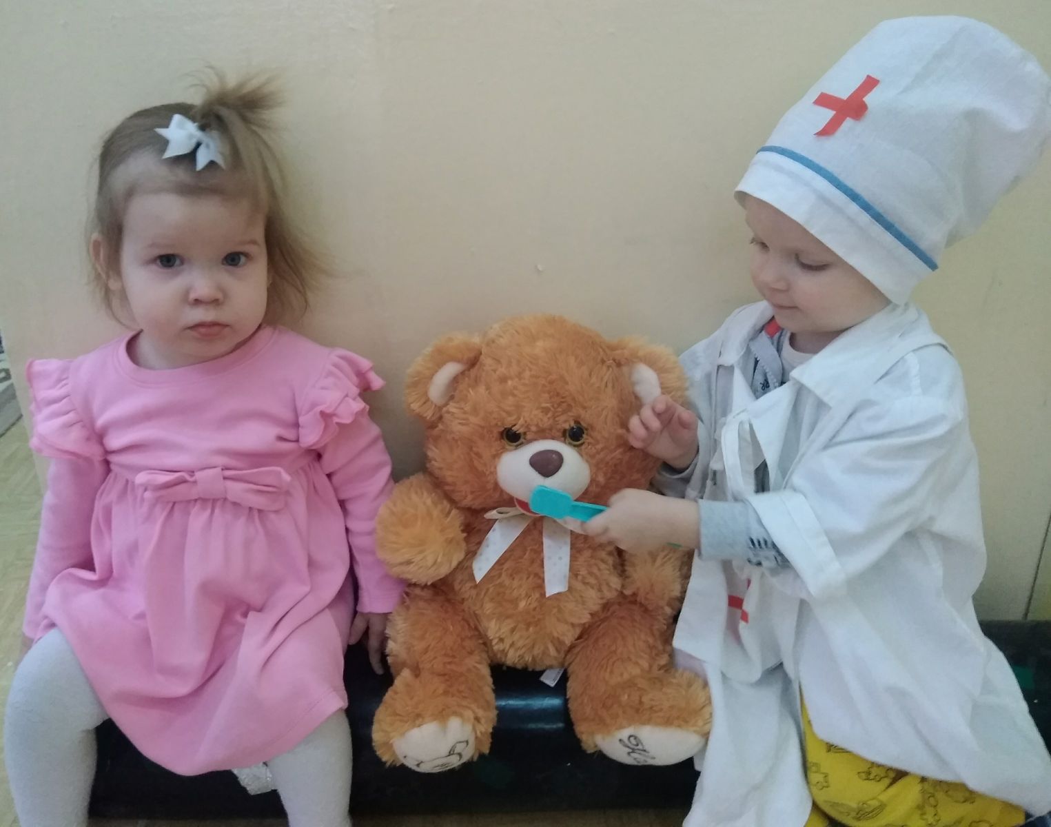 17.11.22г. Продолжается "Неделя нескучного здоровья". Маленькие "Крохи" перевоплотились в докторов, в пациентов, а любимым игрушкам была оказана первая помощь.