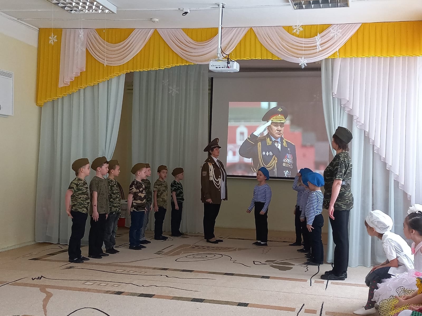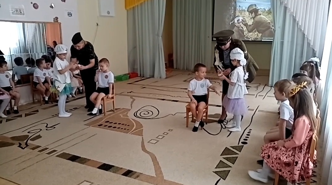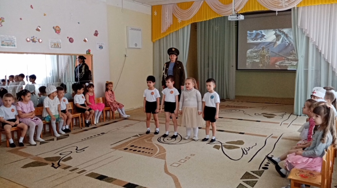 А пока мы знакомим детей и рассказываем, что такое армия, воспитываем уважительное отношение к военному человеку, человеку в форме, прививаем любовь к Родине, и развиваем патриотические чувства. Такие мероприятия, проведённые с детьми, закладывают в их душах зёрнышки патриотизма, чувства долга перед Родиной.