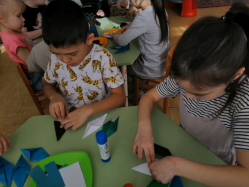 На занятии по художественному труду «Чем нас радует Весна-Красавица?» дети учились создавать художественный образ Весны. Вызвался интерес к конструированию весенних символов: солнце, облако, дождь, лужа, почка, листочек, трава, цветок. Дети продолжили знакомить с техникой оригами — вид декоративно-прикладного искусства; японское искусство складывания фигурок из бумаги. Развивалось ассоциативное восприятие, образное и творческое мышление. (Смотреть видео!)