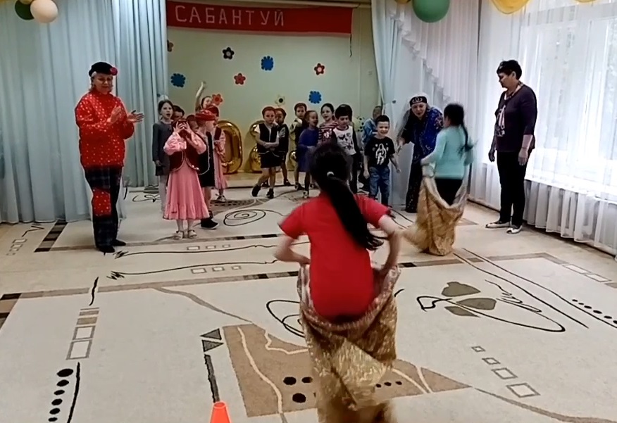 Сегодня наши ребята показали свою ловкость и умения в национальных играх «Юрта», «Бег в мешках», «Бег с ведрами», «Перенеси яйцо в ложке», «Перетяни канат». Самым сложным для ребят, оказалось, попасть по горшку с закрытыми глазами, но и с этим испытанием они справились! Вместе с гостями праздника — Антошкой и Алсу детки водили хоровод и танцевали под национальную музыку! (Смотреть видео!)