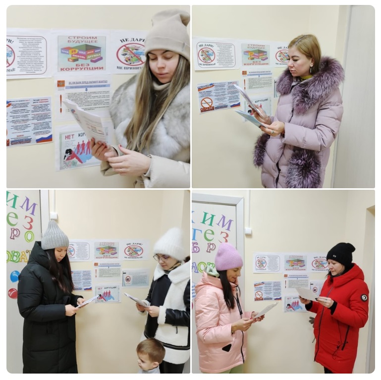05.12.2023г. В рамках проведения Международного дня борьбы с коррупцией, который отмечается ежегодно 9 декабря, в нашем детском саду была организована выставка плакатов "Твоё НЕТ имеет значение!" Также родителям были вручены буклеты "Строим будущее без коррупции" и "Не дари, не принимай!"