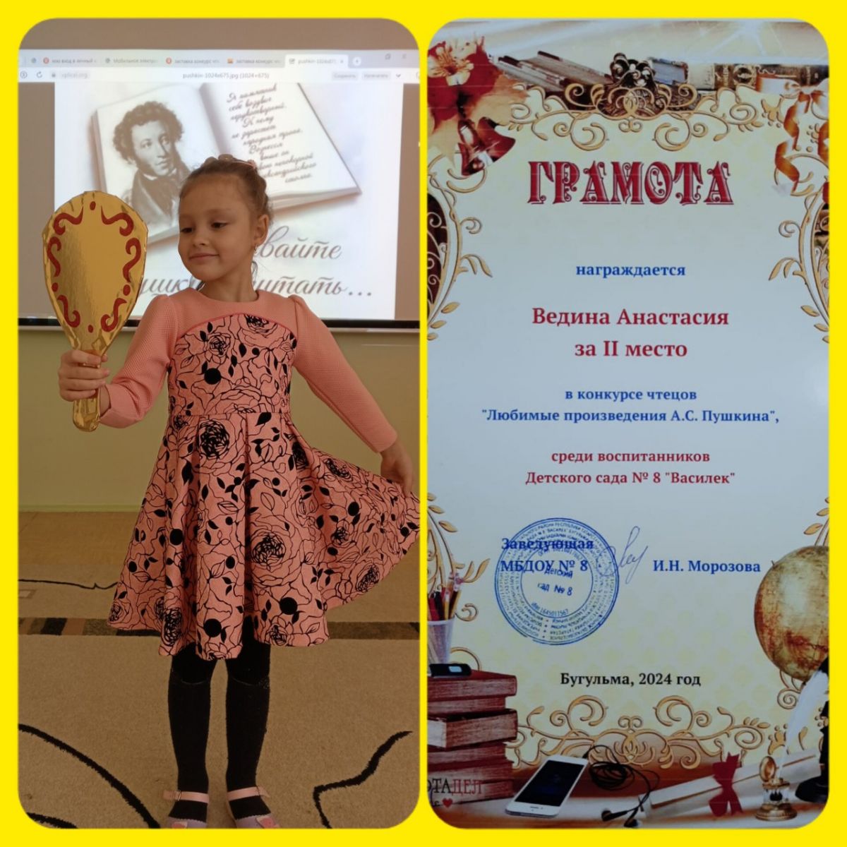 Опубликовано: 31.01.2024В этом году исполнится 225 лет со дня рождения великого русского поэта Александра Сергеевича Пушкина. В честь празднования юбилея выдающегося автора в нашем детском саду прошёл конкурс чтецов его знаменитых произведений. Все участники конкурса (воспитанники группы "Весёлые Ребята") серьёзно подготовились, блестяще выступили, показав своё мастерство и оригинальность исполнения. МОЛОДЦЫ!!!