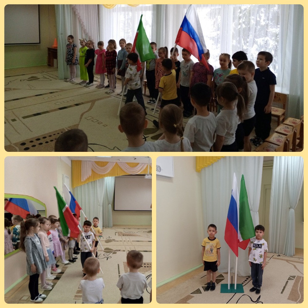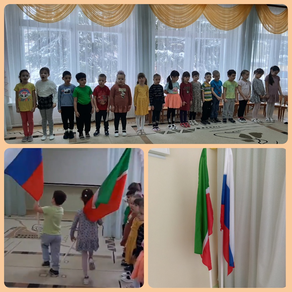 Еженедельно двум воспитанникам детского сада предоставляется почётное право водрузить флаги России и нашей Республики. В это время для всех звучат поочерёдно Государственные гимны нашей дорогой необъятной Родины и любимого Татарстана.