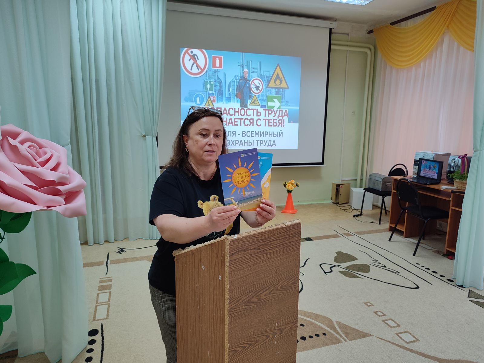 26 апреля 2024 года в детском саду № 8 «Василек» было проведено мероприятие, посвящённое Всемирному дню охраны труда. Выступающие рассказали о том, что около 85 % всех заболеваний современного человека связано с неблагоприятными условиями окружающей среды. Поэтому сейчас очень остро стоит проблема здоровья человека и окружающей среды.