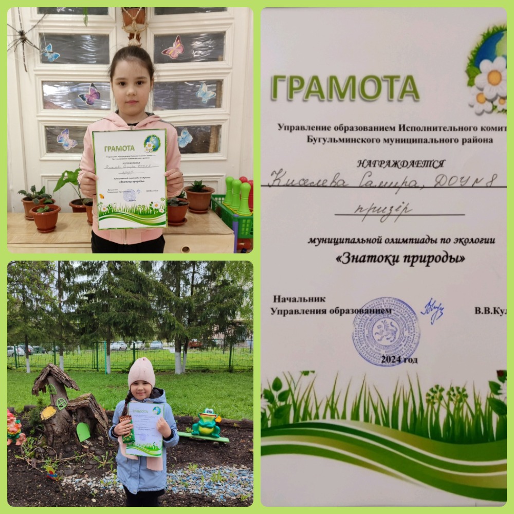07.05.2024 г. Поздравляем Киселеву Самиру с призовым результатом в городской олимпиаде по экологии "Знатоки природы".