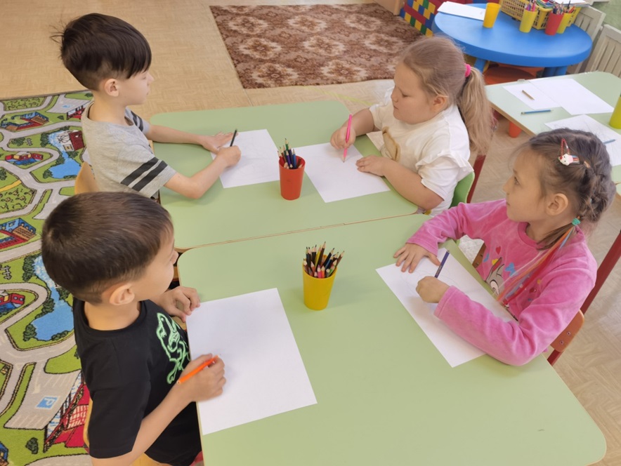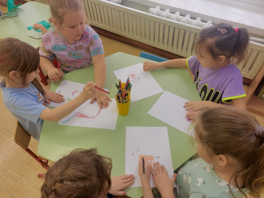 Игровое упражнение «Закончи рисунок». Цель: способствовать развитию умения делиться со сверстниками, помогать в процессе совместной деятельности.