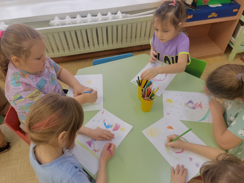 Упражнение «Свободное рисование». Цель: актуализация эмоционального состояния детей, выведение негативного состояния вовне; рефлексия прошедшего занятия.