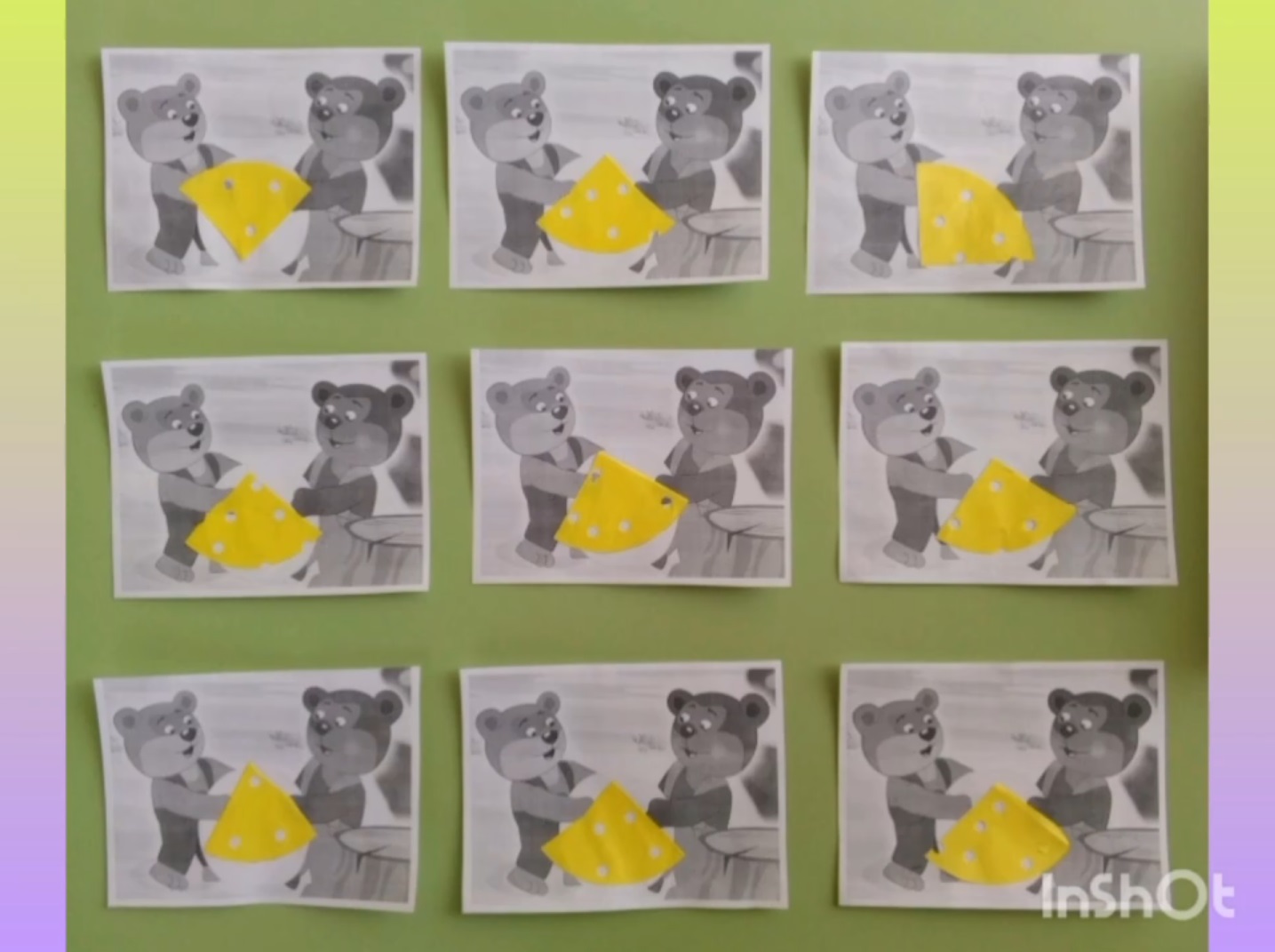 Поговорив и обсудив сказку с ребятами, мы решили, что нужно быть щедрыми, всегда делиться со своими друзьями, близкими и не верить каждому встречному. А на занятии по аппликации ребята сделали сыр для медвежат, чтобы их утешить и помирить.