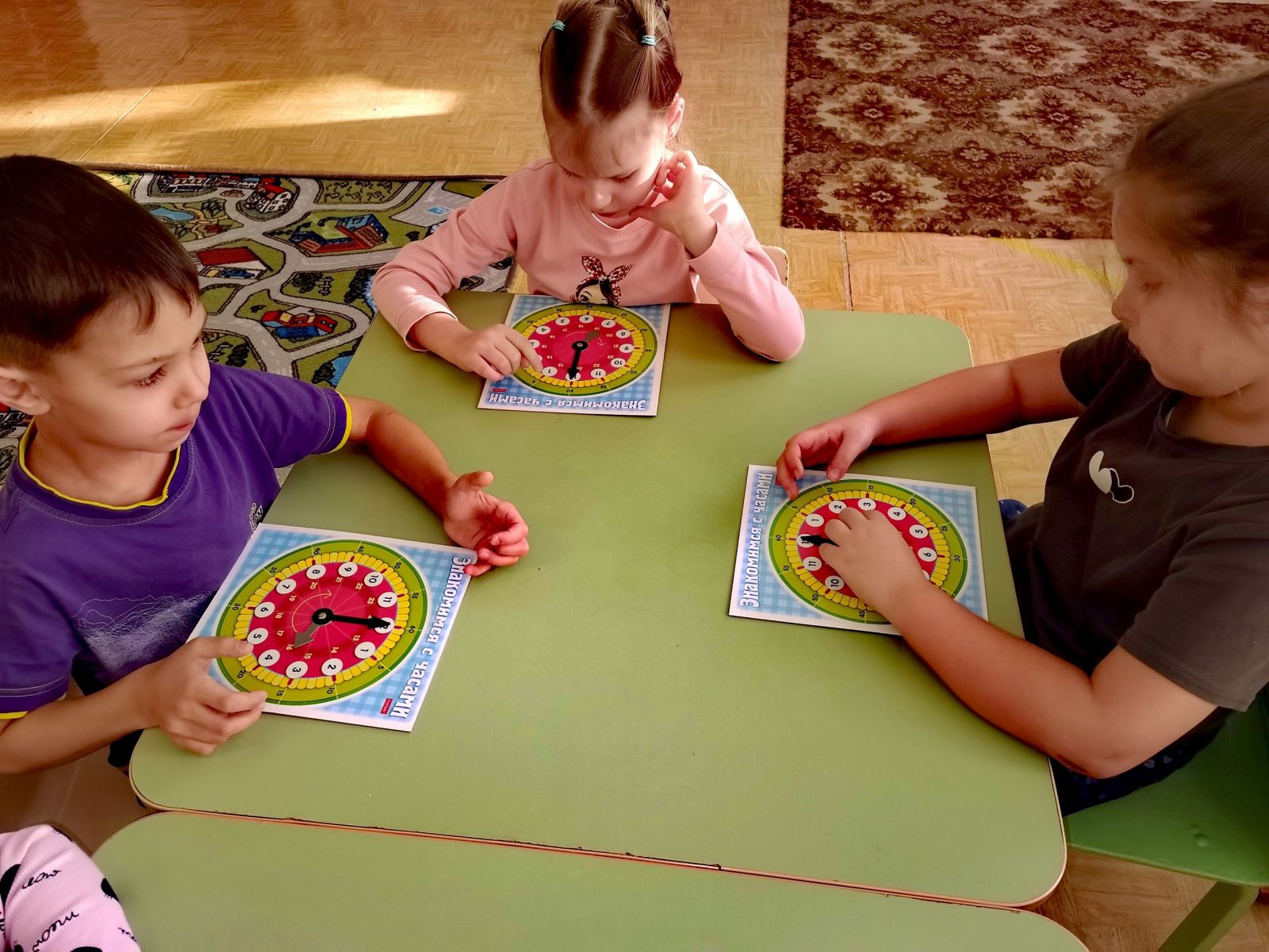 Продолжили знакомство с часами, учились устанавливать время на макете часов.