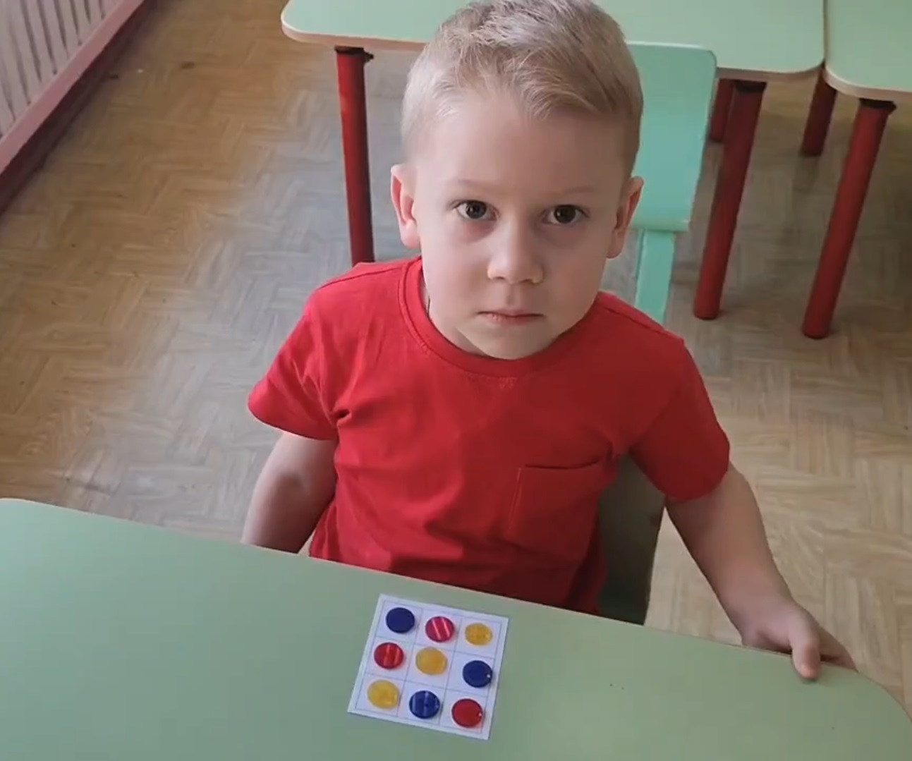 В нашей головоломке "Судоку с пуговицами" мы предлагаем использовать вместо цифр цветные пуговицы. Поле квадрата состоит всего лишь из 9 ячеек. Но принцип задания тот же: надо разложить пуговицы разного цвета в ячейки квадрата так, чтобы цвет пуговиц не повторялся ни в рядах (по горизонтали), ни в колонках (по вертикали). (Смотреть видео!)