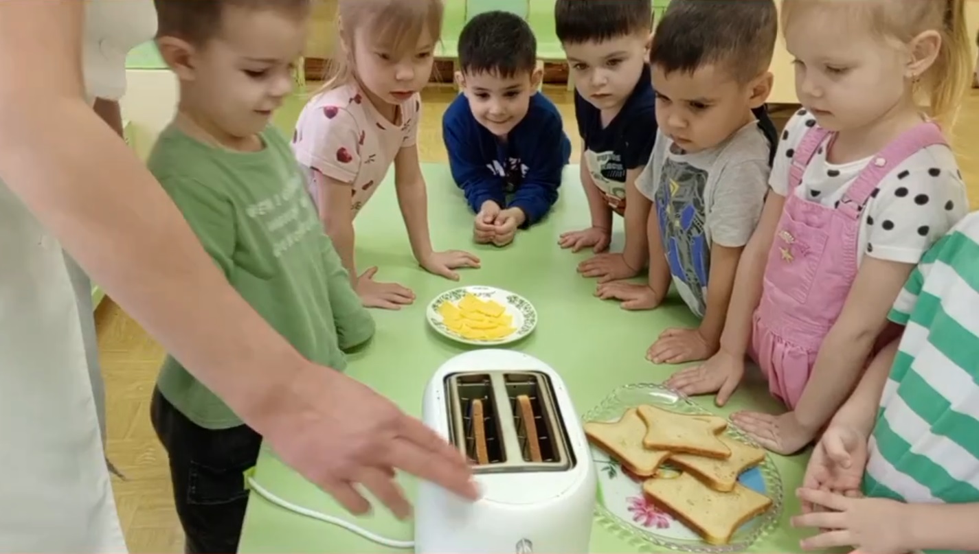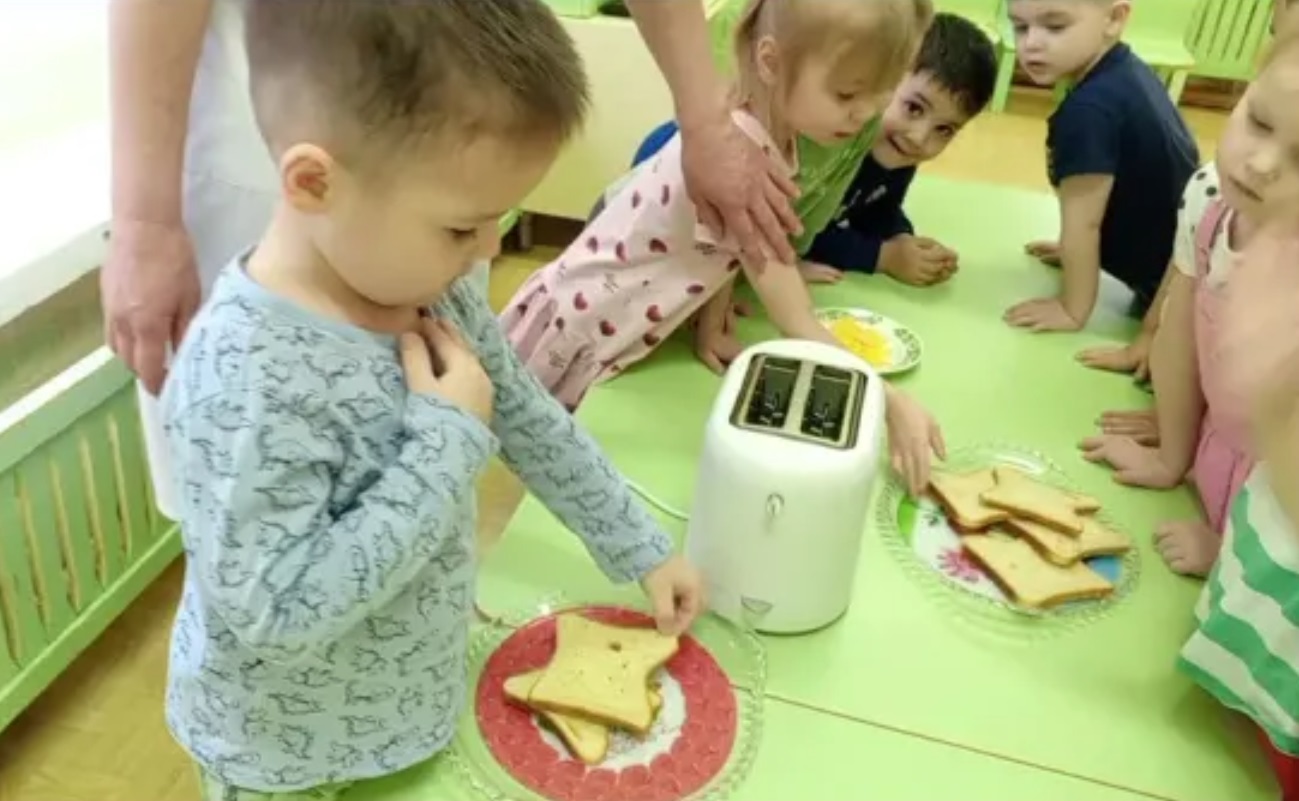 Она познакомила наших деток с ещё одним из приборов кухонной техники — тостером! Рассказала о правилах использования и правилами безопасности при его применении. Ребята сами приготовили вкусные тосты с сыром и устроили чаепитие! Это было здорово!