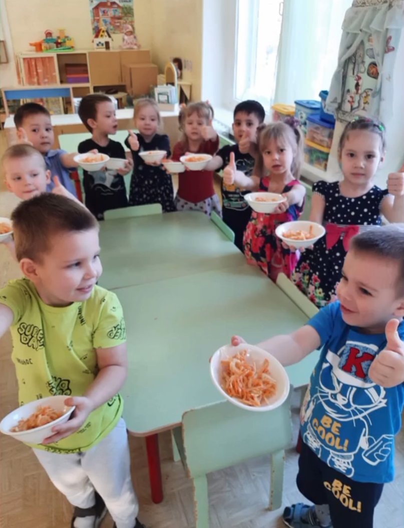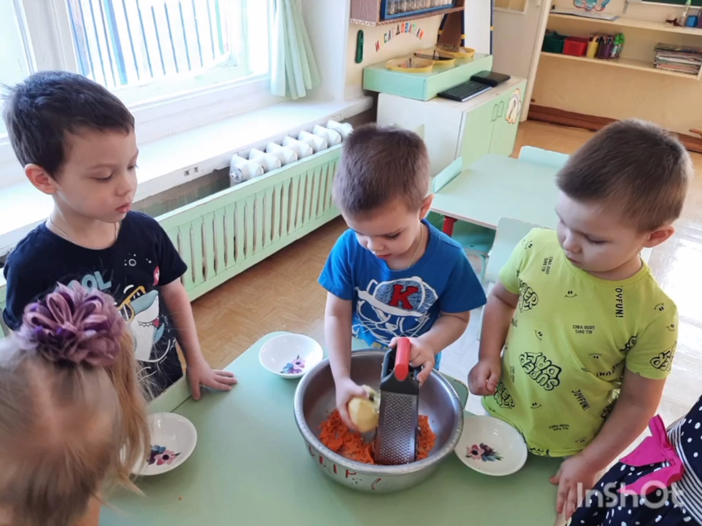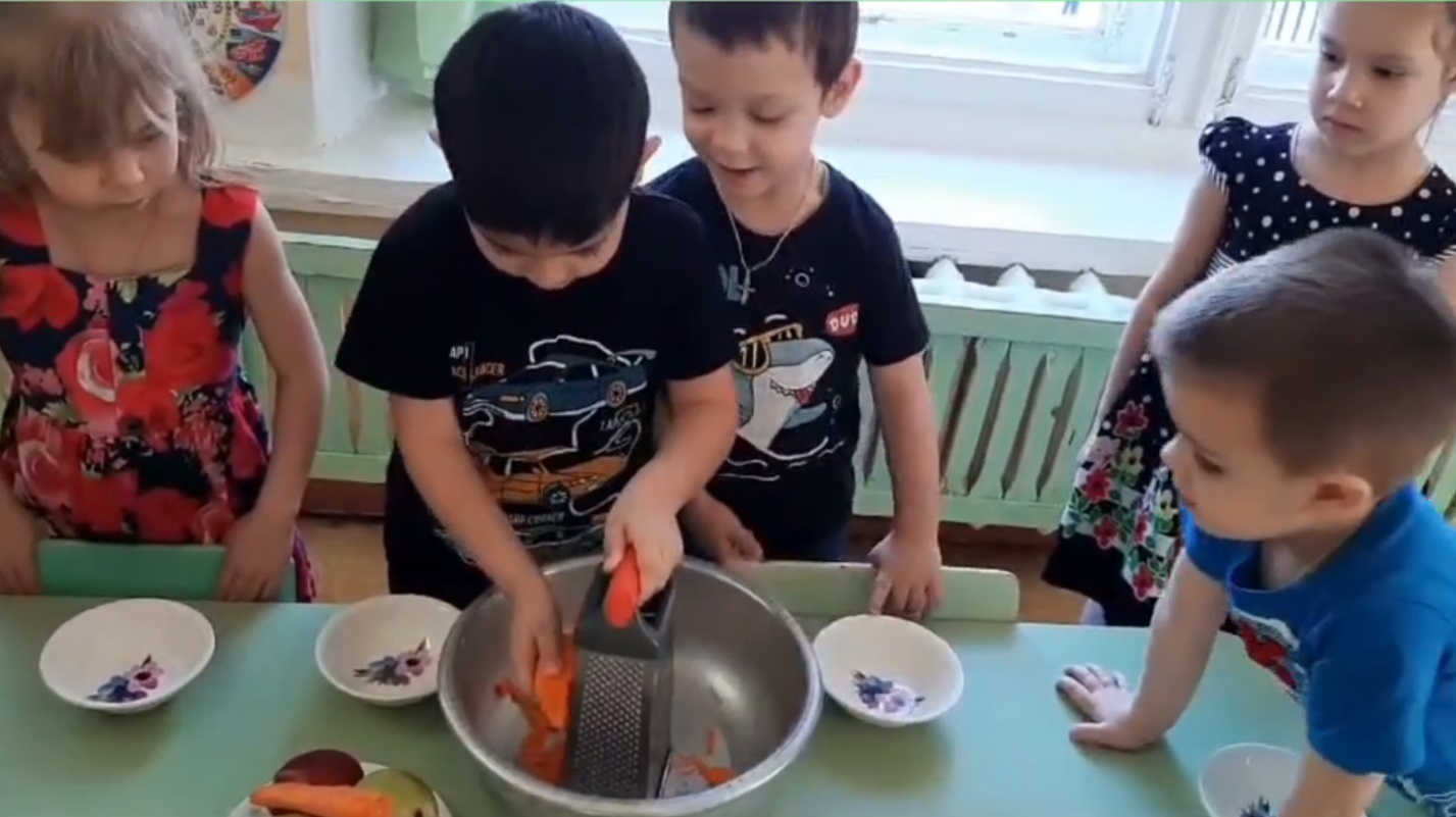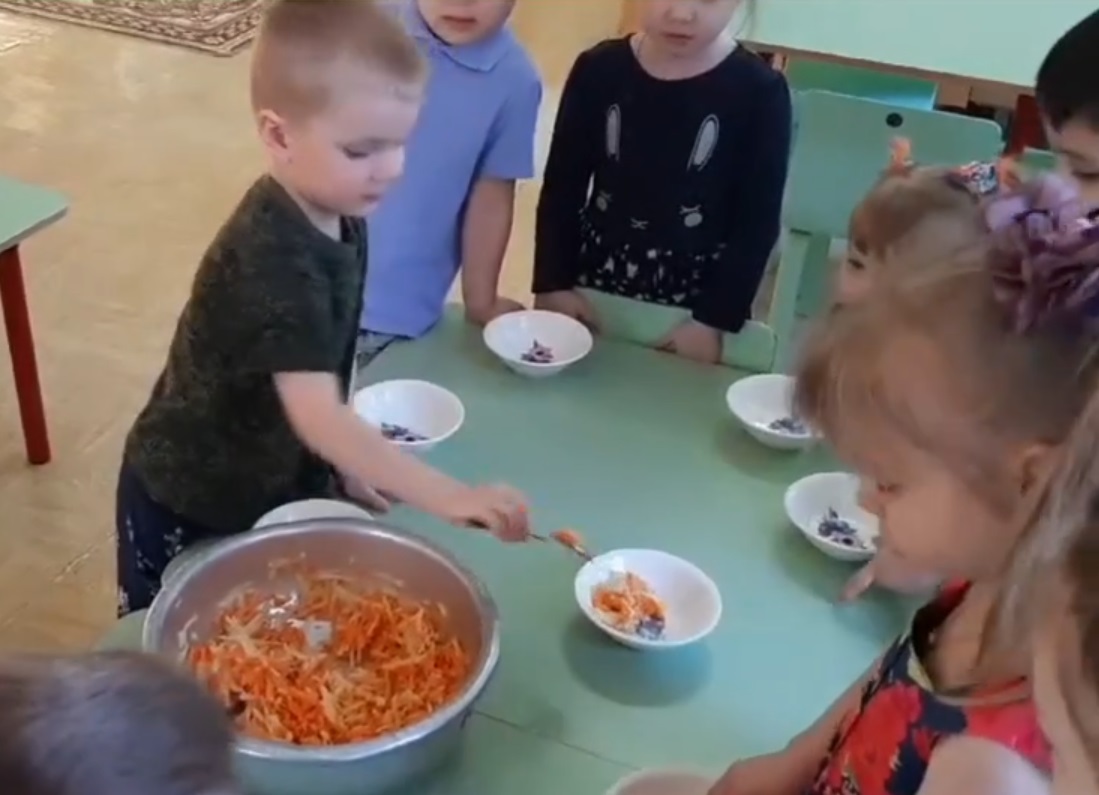 20.02.2025 г. Сегодня дети познакомились с правилами натирания продуктов на тёрке, учились строго соблюдать правила безопасности при работе с тёркой. Для приготовления салата нам понадобились: яблоко — 2 шт., морковь — 2 шт. Салат из моркови и яблока для детей не только вкусный, но ещё и полезный. Такой салат — настоящий кладезь витаминов, который с удовольствием едят не только дети, но и взрослые! Овощи натереть на тёрке, все смешать, по желанию можно добавить сметану или растительное масло. Сами сделали, сами поели — зарядились витаминами! Наши поварята — супер! (Смотреть видео!)