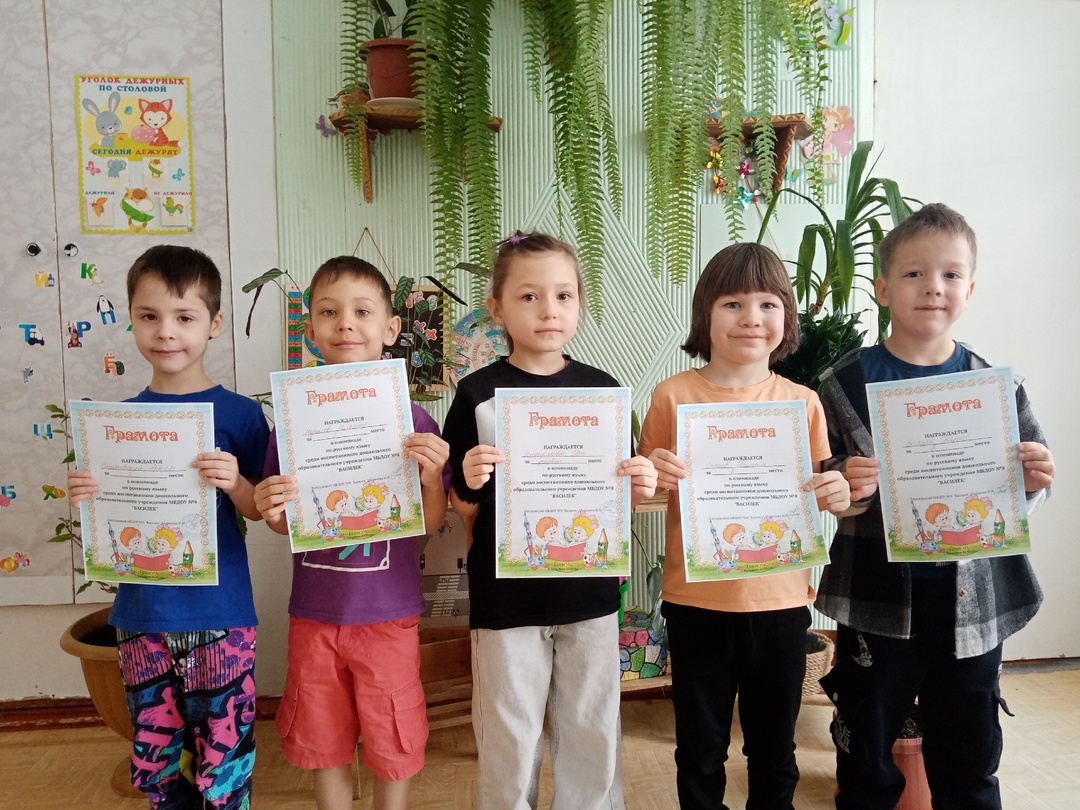 Поздравляем от всей души Сираева Камиля, Идрисова Ильмира, Индирякову Еву, Юсупову Карину, Заляева Даниса, Столповского Артёма с победой в дошкольной олимпиаде по русскому языку среди воспитанников детского сада!!!