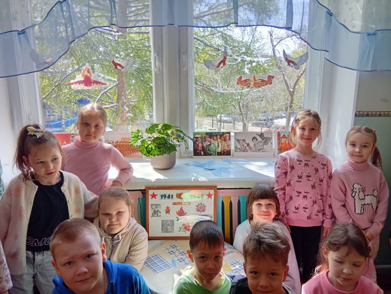 Опубликовано: 29.04.2025На протяжении десятилетий День Победы остаётся в России самым трогательным, самым душевным праздником! В преддверии 80-летия Великой Победы наш детский сад принимает участие во Всероссийской акции «Окна Победы». Это масштабная патриотическая инициатива, которая призывает россиян украсить окна своих домов, учебных заведений и общественных пространств памятными наклейками, посвящёнными знаменательной дате. Акция направлена на сохранение исторической памяти о героизме и подвиге советского народа в Великой Отечественной войне и объединение граждан вокруг общих ценностей. Это дань мужеству и героизму наших солдат в борьбе с фашизмом.