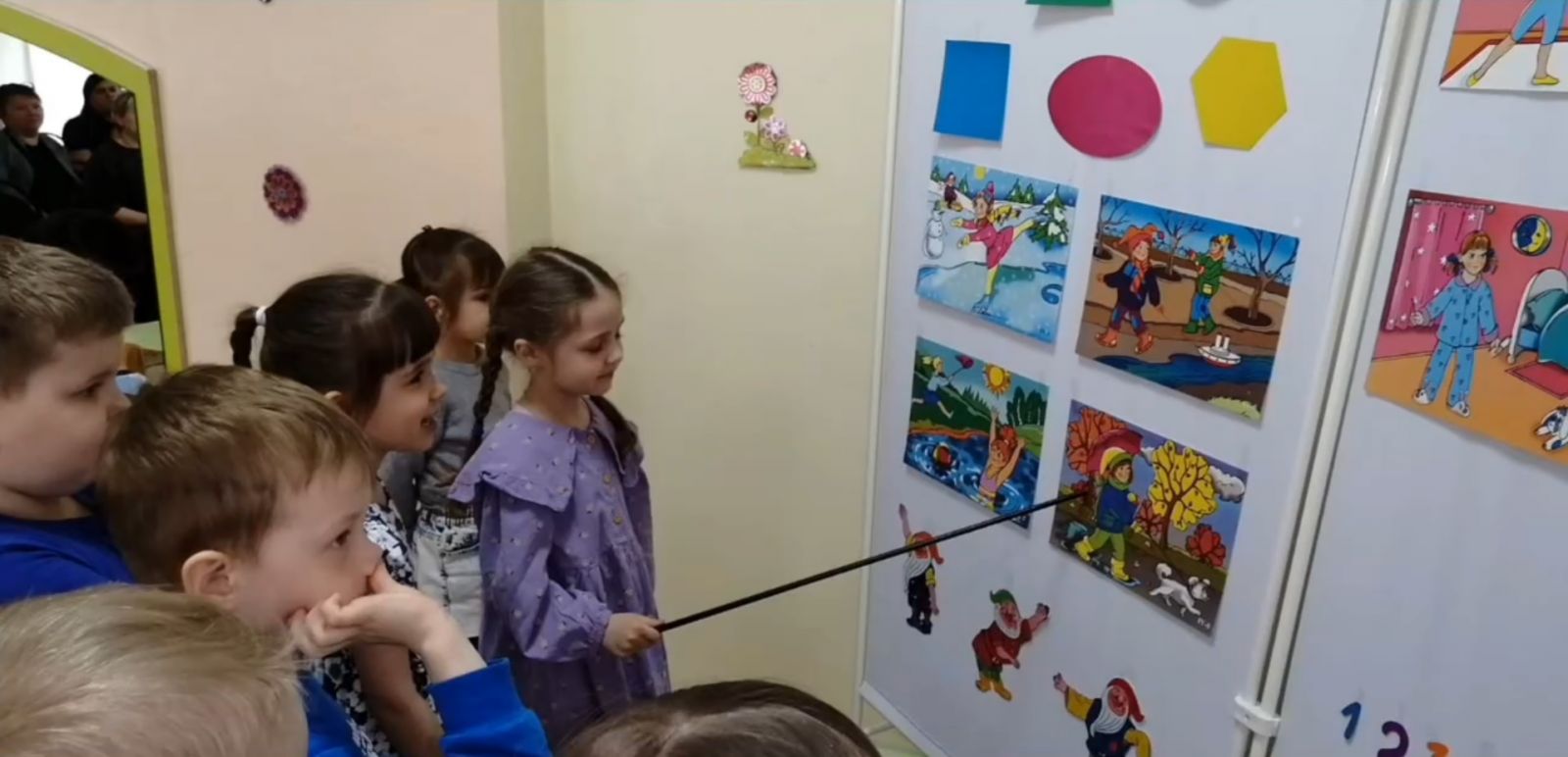 Дети показали свои знания о временах года, днях недели, частях суток, в умении ориентироваться на листе бумаги, в играх "Живые цифры", "Пропущенное число", "Соседи числа" дети закрепили прямой и обратный счёт. Ребята показали также свои знания в играх "Скажи одним словом" (обобщение), "Четвёртый лишний", "Сигналы светофора" (правила перехода проезжей части, поведения на улице), выполняли задания на звуковую культуру речи.