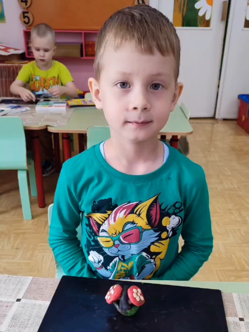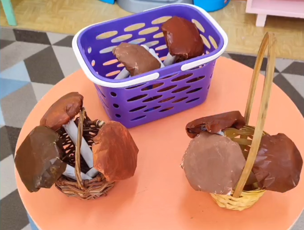 Ребята закрепили название грибов, вспомнили, что грибы бывают и несъедобные. На занятии по лепке ребята собрали разнообразные грибы в свои лукошки.