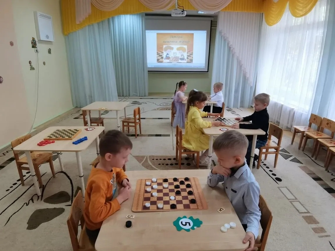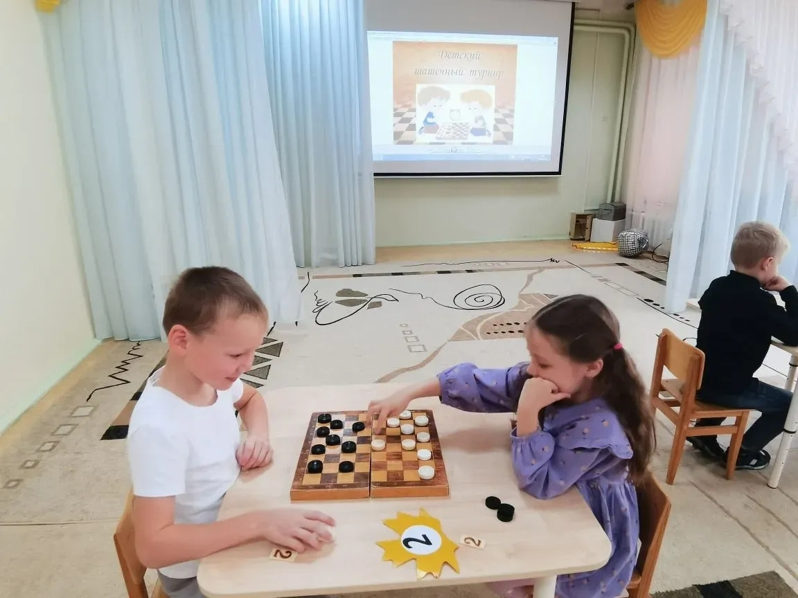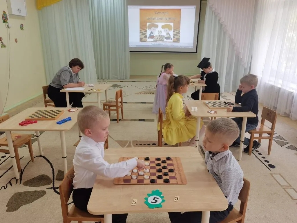 Сегодня в нашем детском саду состоялся турнир по русским шашкам среди воспитанников старшего дошкольного возраста. Целью этого мероприятия было создание условий для интеллектуального развития детей, повышения интереса к этой игре, развивающей логику, внимание, мышление ребёнка.