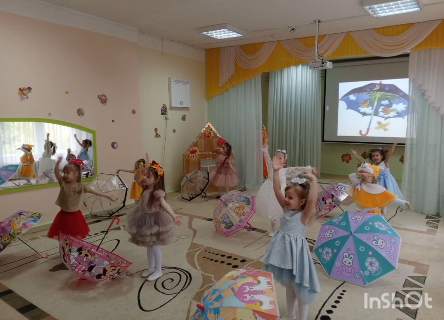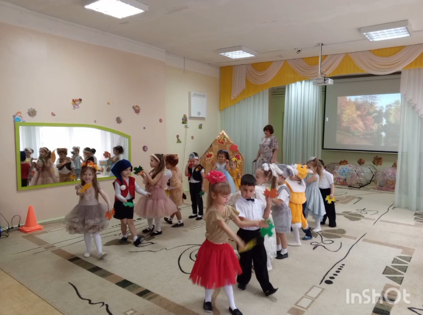 Ребята не только танцевали, но и играли в забавные игры, которые подарили детям множество ярких эмоций. Наши маленькие артисты с удовольствием пели песни для гостьи — милой Осени, делясь с ней своей энергией и теплом.