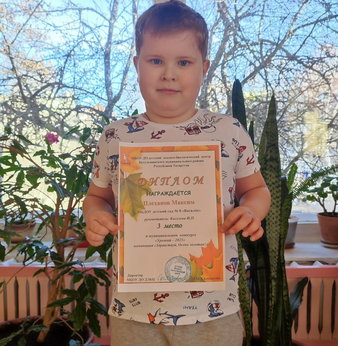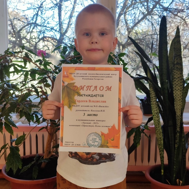 Воспитанники группы "Ромашка" приняли участие в муниципальном конкурсе "Урожай-2025" в номинации: декоративно-прикладное творчество "Здравствуй, Осень золотая!", который проводился в октябре месяце. У нас три третьих места и гамоты за участие! Поздравляем Плеханова Максима, Гордеева Владислава, Сибгатуллина Марата, конечно же Макаревскую Маргариту и Венюкова Артёма! Молодцы!!!