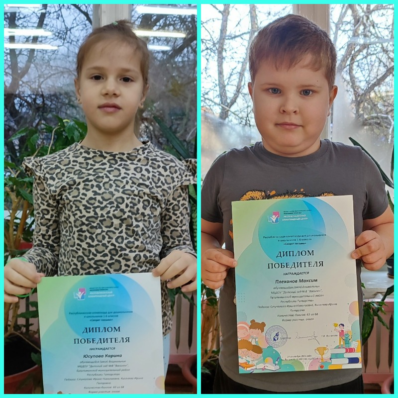 Наши ребята Юсупова Карина и Плеханов Максим приняли участие в Республиканской олимпиаде "Секрет письма" и стали победителями. Поздравляем!!!