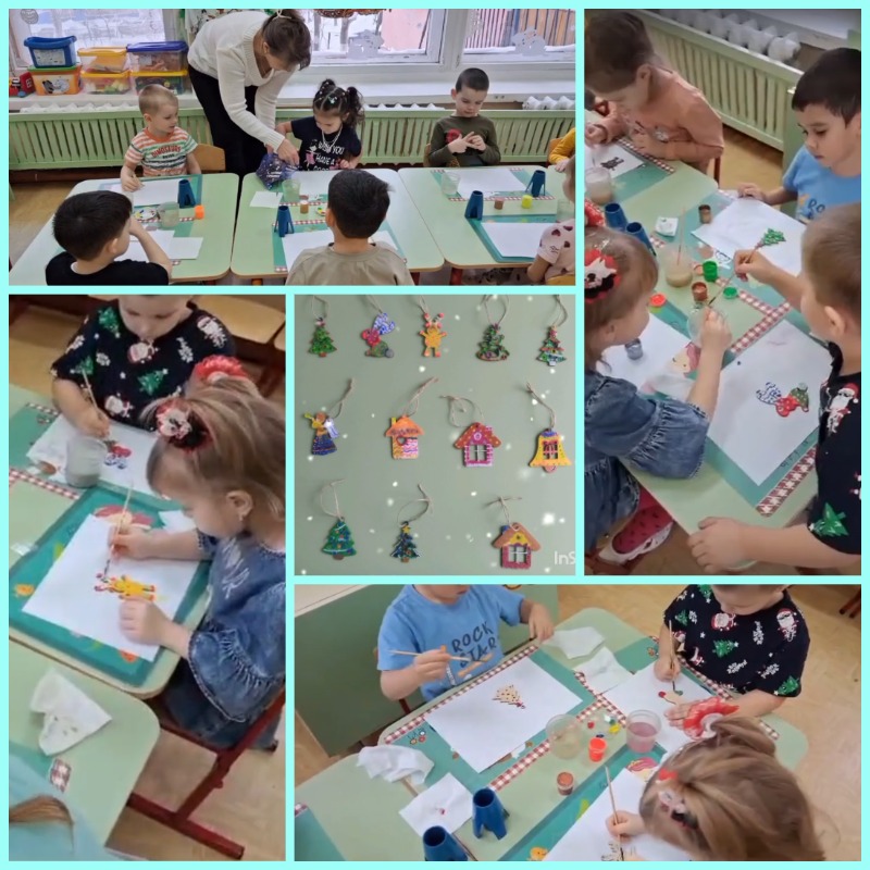 Сегодня в нашем детском саду прошёл волшебный мастер‑класс по росписи новогодней игрушки из дерева!