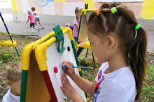 Замеательная возможность проявить свои творческие способности представилась сегодня всем без исключения. Прошли мастер-классы по изготовлению игрушек из бросового материала, конкурсы рисунков на асфальте, на мольберте, на песке и на воде.