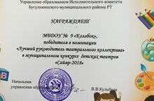 Поздравляем Аношину Регину Анваровну и всех участников конкурса детских театров "Сайяр-2018" с победой в номинации "Лучший руководительтеатрального коллектива"