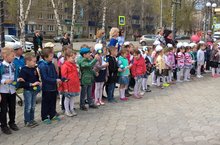 Впервые в нашем городе прошел парад дошкольников , посвященный Дню Победы! В параде приняли участие ребята из детских садов №9, 26 и 6. и учащиеся кадетской школы. Кадеты показали строевые упражнения Дошколята приветствовали кадетов, а затем и сами прошли в строю с песней "Прадедушка"