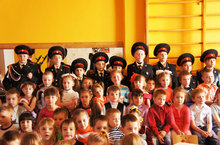 Сегодня в детском саду праздник, мальчики получают поздравления. Пройдет чуть больше 10 лет и наши мальчишки станут защитниками Родины. В гостях у наших малышей сегодня кадеты. С восторгом встретили их дошколята. Ребята из кадетской школы подготовили концерт, показали элементы строевой подготовки. С большим интересом смотрели дошкольники, как ловко кадеты умеют разбирать и собирать автомат. А некоторым счастливчикам удалось примерить "настоящую военную фуражку". Спасибо всем, кто организовал нашу встречу.