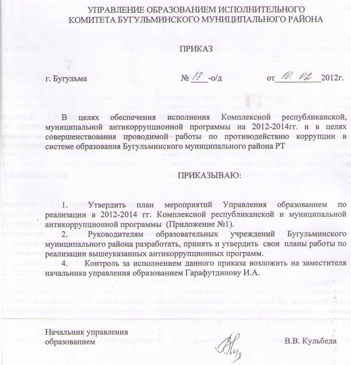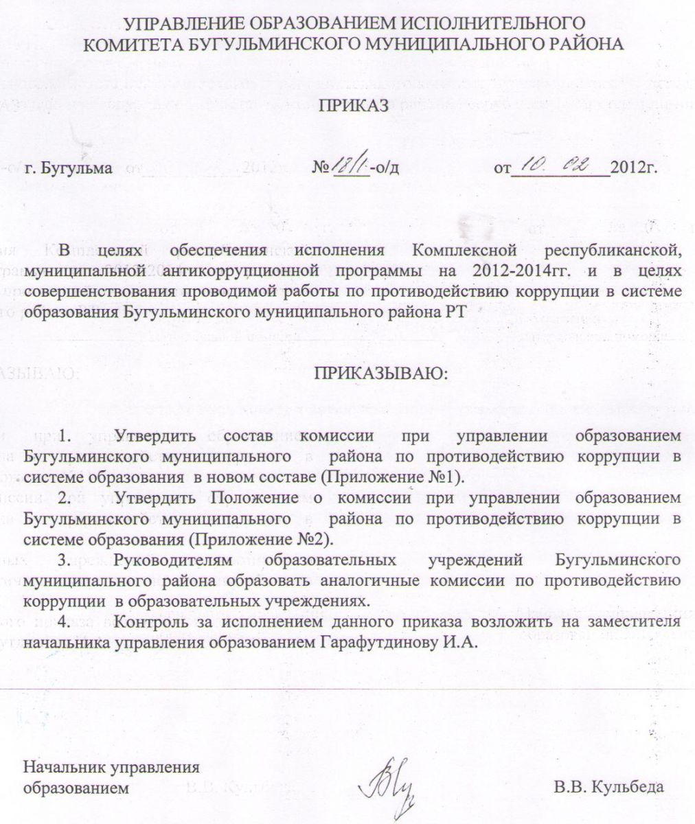 Комплексная антикоррупционная программа Бугульминского муниципального района