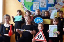 Безопасность детей на дороге является одной из главнейших задач каждого взрослого.. Особенно сейчас, когда темнеть стало рано, а рассветает поздно. Именно поэтому во Дворце школьников педагоги проводят мероприятия по закреплению знаний по ПДД.. Ребята из студий "Радуга" и «Грация» активно поучаствовали в уроке «Безопастная дорога в школу». Ребята не только рассказали друг другу ,как они переходят проезжую часть и какие они встречают дорожные знаки по дороге в школу, но и поиграли в подвижные и музыкальные игры «Веселый светофор», «Засветись», «Я велосипедист».