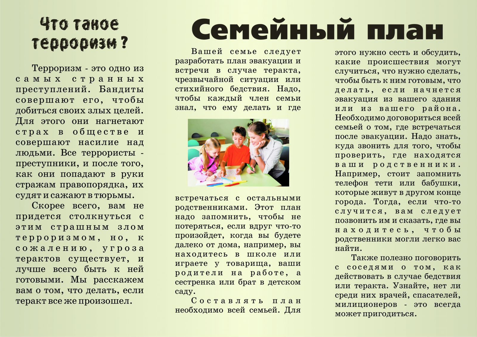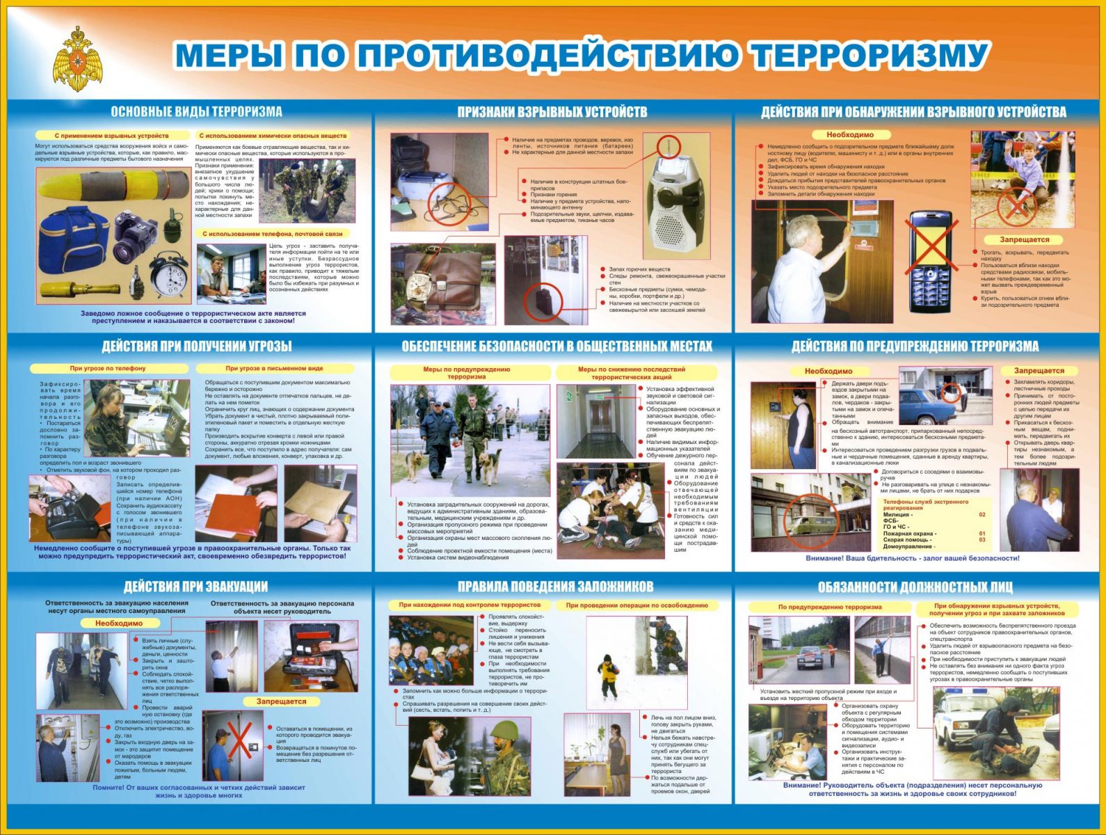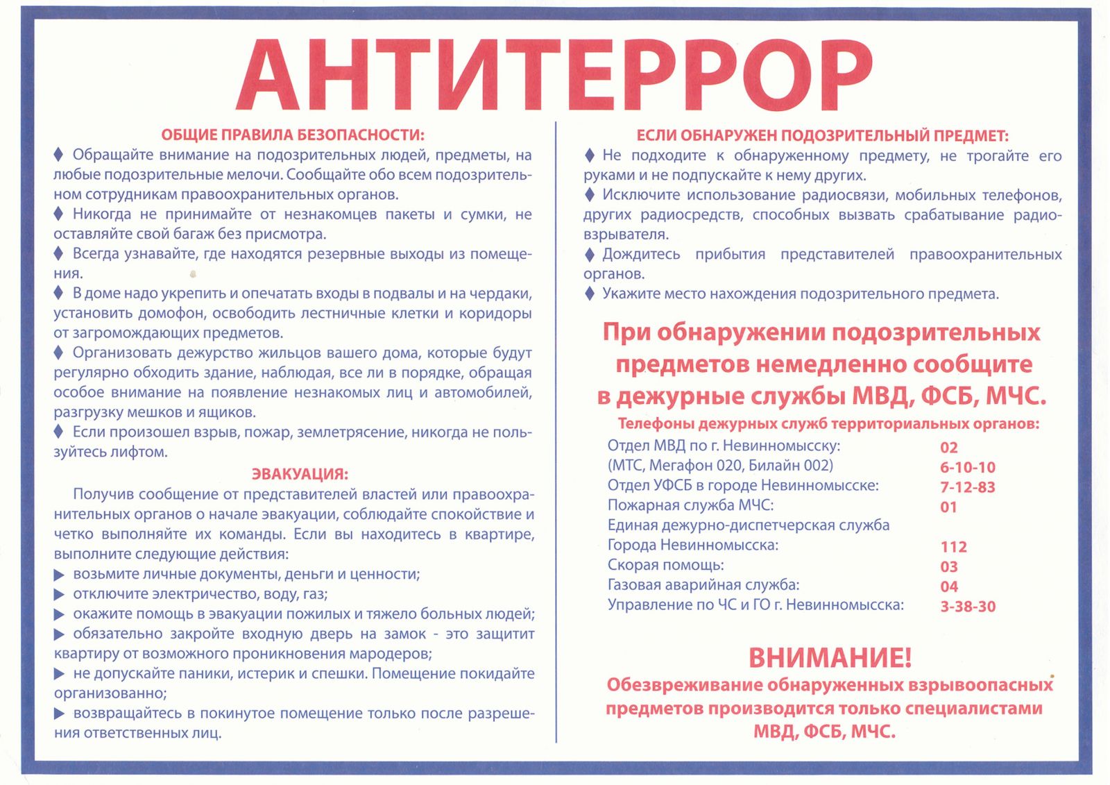 Телефоны экстренных и специальных служб для сообщений о готовящихся или совершенных терактах и других чрезвычайных ситуаций
