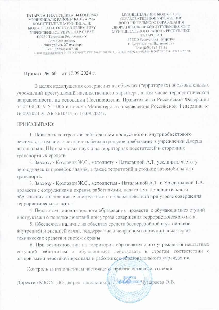 Муниципальное бюджетное образовательное учреждение дополнительного образования дворец школьников Бугульминского муниципального района Республики Татарстан