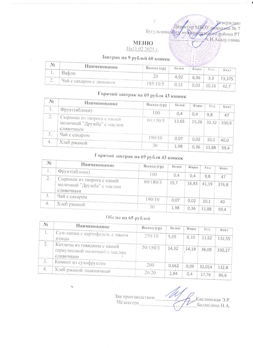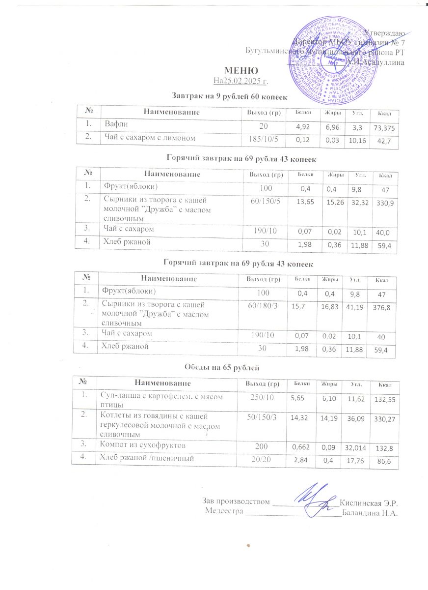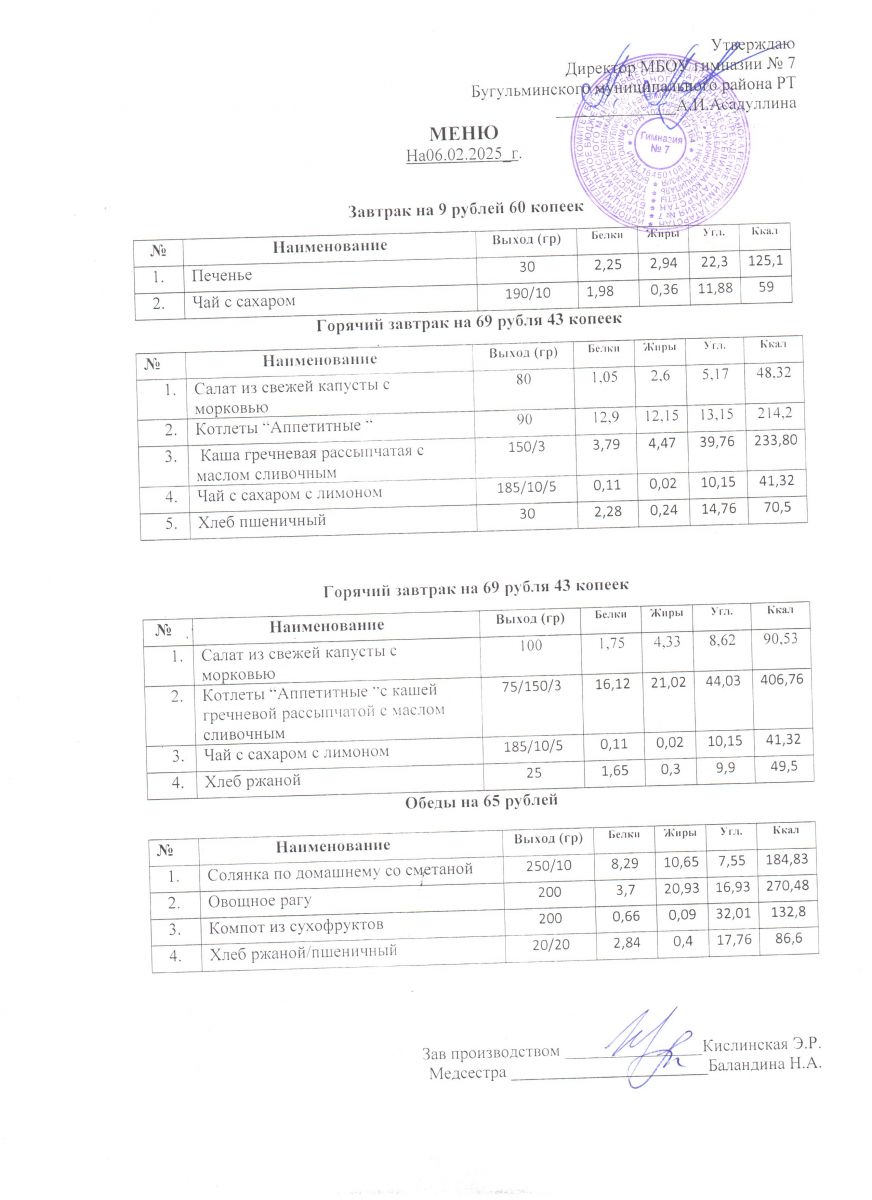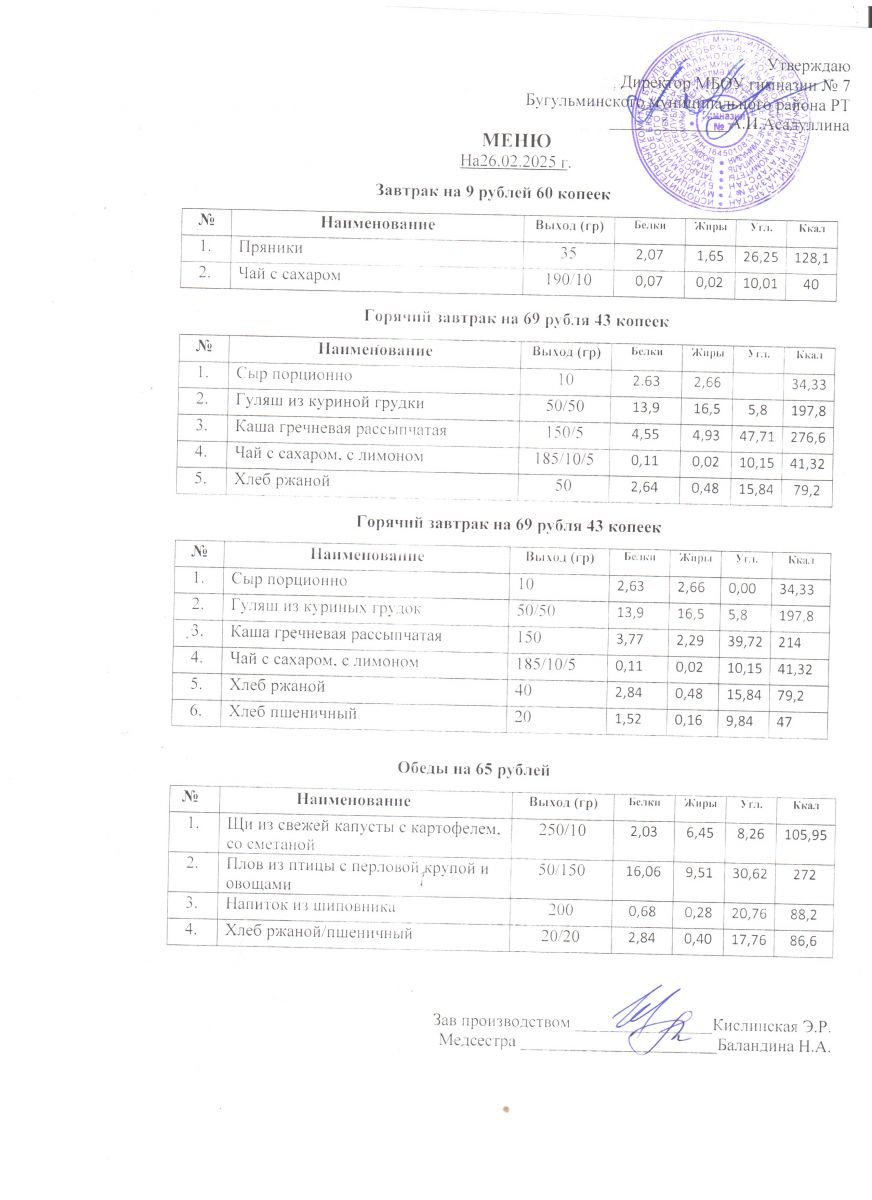 Меню на 2025-2026 учебный год