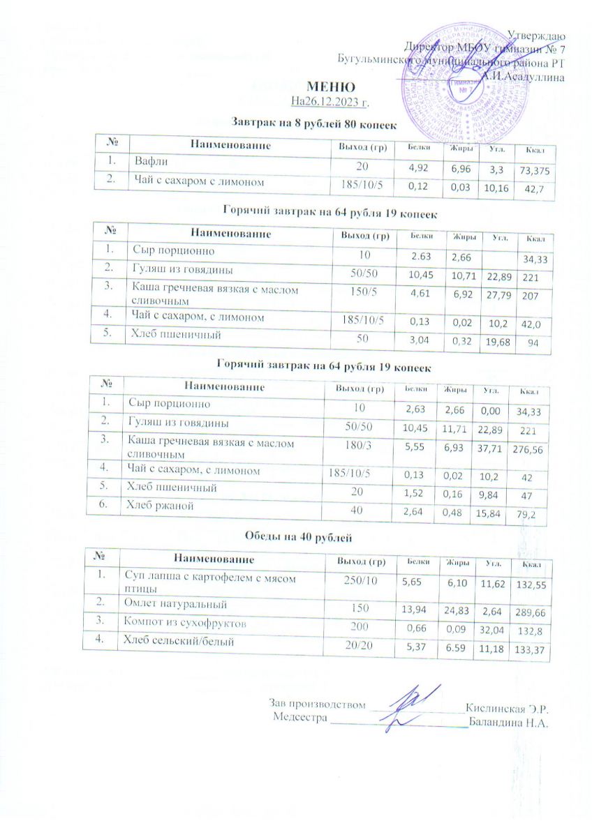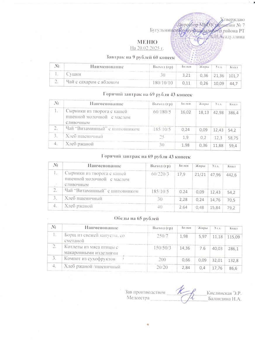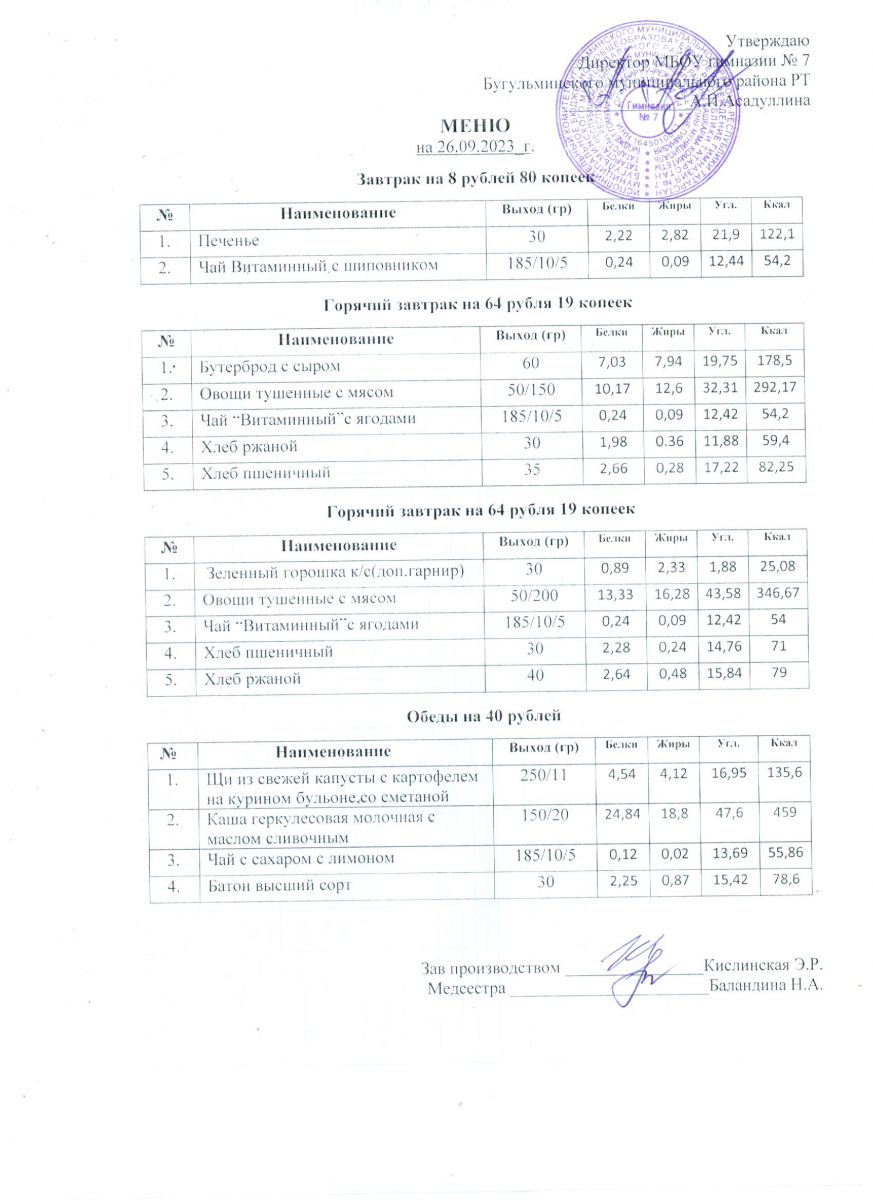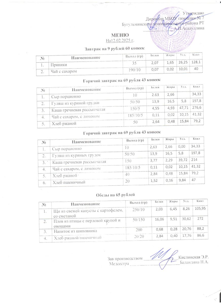 Меню на 2025-2026 учебный год