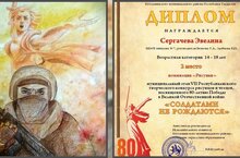 По итогам муниципального этапа VII Республиканского творческого конкурса рисунков и чтецов, посвященного 80-летию Победы в Великой Отечественной войне "Солдатами не рождаются" в номинации "Рисунки" (возрастная категория 14-18 лет) ученица 8 класса Б, Сергачева Эвелина (руководители педагог-организатор Здобнова Е.П., советник директора Венкова Т.А.) заняла почетное II место ! Поздравляем !!! Гимназия гордится своими учениками!!!