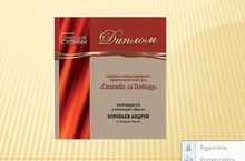 В год 70 - летия Великой Победы медиапортал "Самсуд" организовал международный творческий конкурс "Спасибо за Победу". Рассказ учителя русского языка и литературы Андрея Борисовича Воробьева "Возвращение" вошел в топ - лист 25 - ти лучших произведений в номинации "Проза" и отмечен дипломом лауреата.