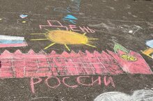 В преддверии Дня России ребята из пришкольного лагеря "Звездный" пришли в бело-сине-красных цветах с рисунками для выставки "Россия для меня это…" После завтрака все отправились рисовать на асфальте символы, связанные с нашей огромной страной , а потом пели хором патриотические песни.