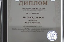 Всей нашей дружной гимназической семьей поздравляем Айнура Аглямова, ученика 7Б класса, и его наставника, учителя технологии Михаила Александровича Сапожникова, с призовым местом в республиканском этапе Всероссийской олимпиады по технологии.