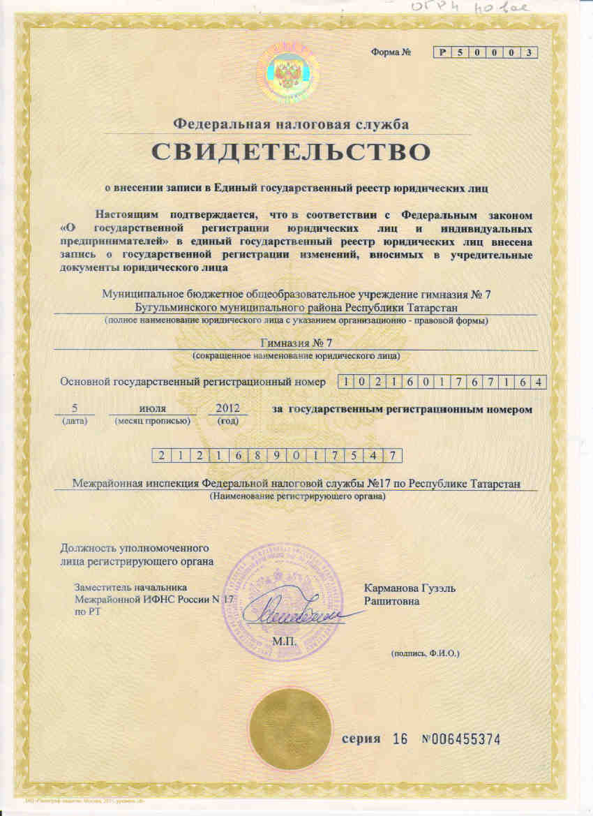 Муниципальное бюджетное общеобразовательное учреждение гимназия №7 Бугульминского муниципального района Республики Татарстан