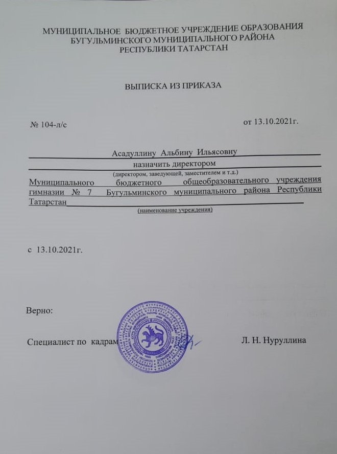 Муниципальное бюджетное общеобразовательное учреждение гимназия №7 Бугульминского муниципального района Республики Татарстан