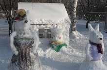 В морозные дни многие родители пришли в наш детский сад, чтобы превратить снежные участки в зимнее чудо. Из сугробов появились причудливые фигуры. Благодаря стараниям родителей и воспитателей участки превратились в сказку, заиграли разными красками, стали увлекательными и интересными.