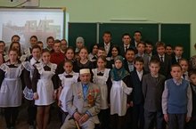 Общешкольная линейка, во время которой учащиеся всех классов рассказали стихи Габдуллы Тукая, вместе спели песню "И туган тел...", затем поехали к мемориалу поэта, чтоы возложить цветы.