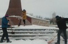 Дежур сыйныф үзенең вазифасын һәр атна үти - Мәңгелек ут монументында кар чистарта.